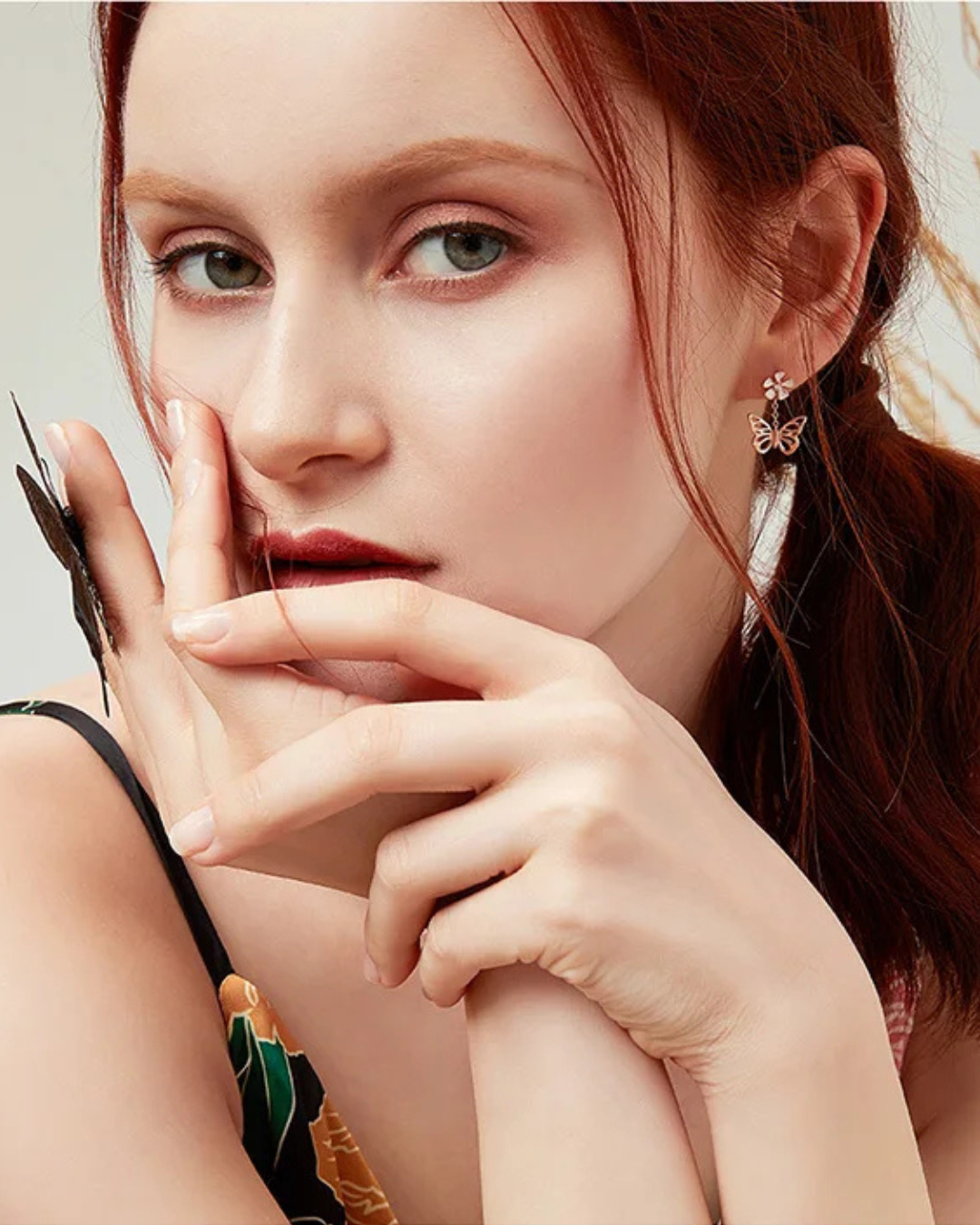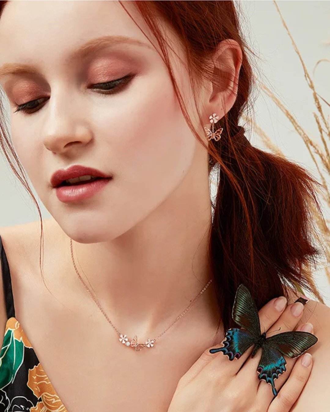 Set Dancing Butterfly son una fusión de delicadeza y simbolismo. Inspirados en la ligereza de las mariposas y la frescura de las flores, están elaborados en plata 925 bañada en oro rosa, ofreciendo un brillo cálido y sofisticado que realza cualquier estilo.