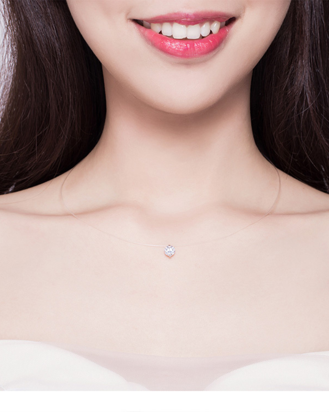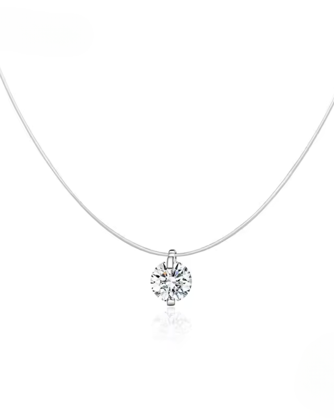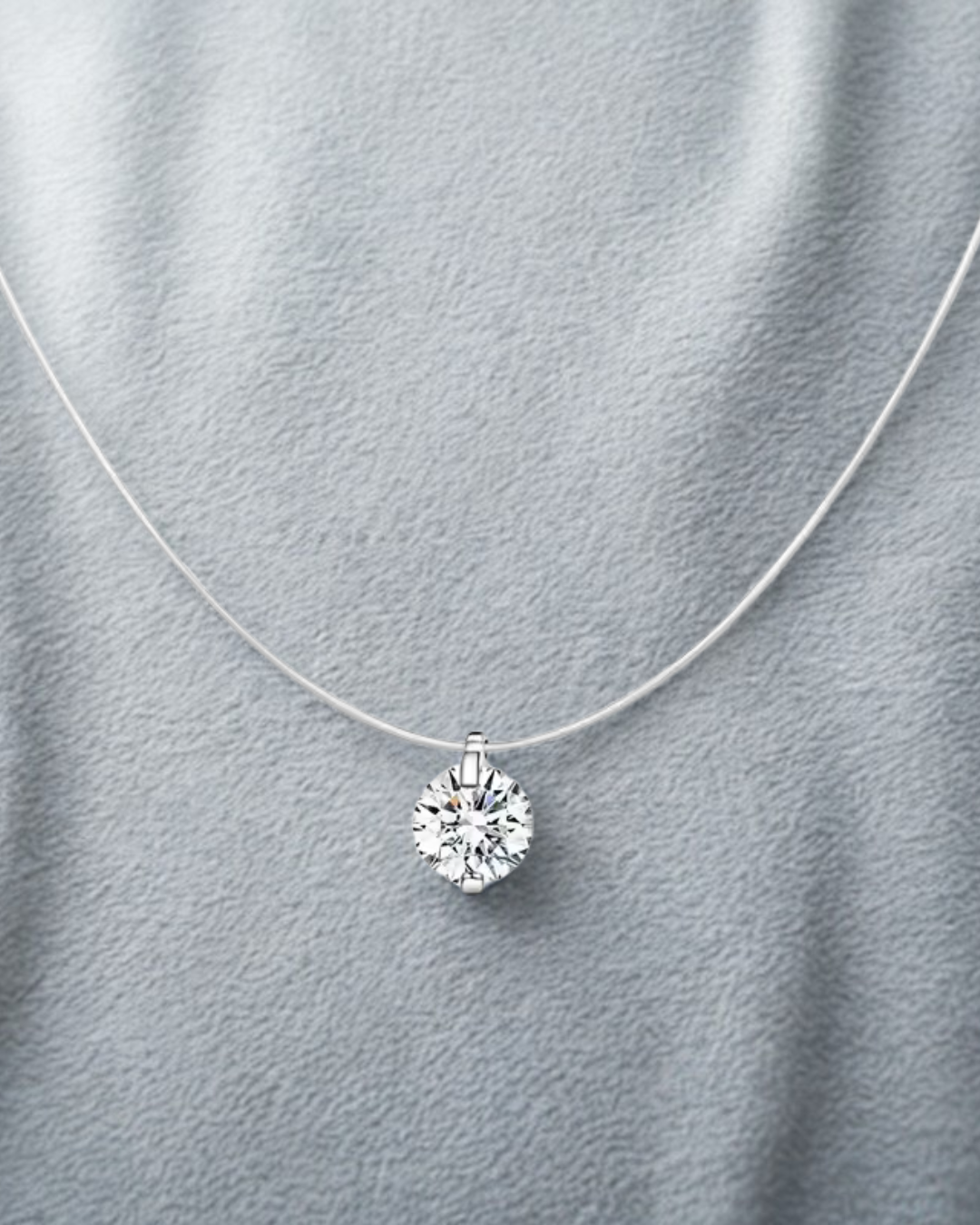 The Transparent Necklace with Moissanite combines the purity of a brilliant solitaire with the subtlety of an invisible line, creating the illusion of a diamond suspended in the air. Its minimalist design highlights the central stone, giving all the attention to its unique sparkle.